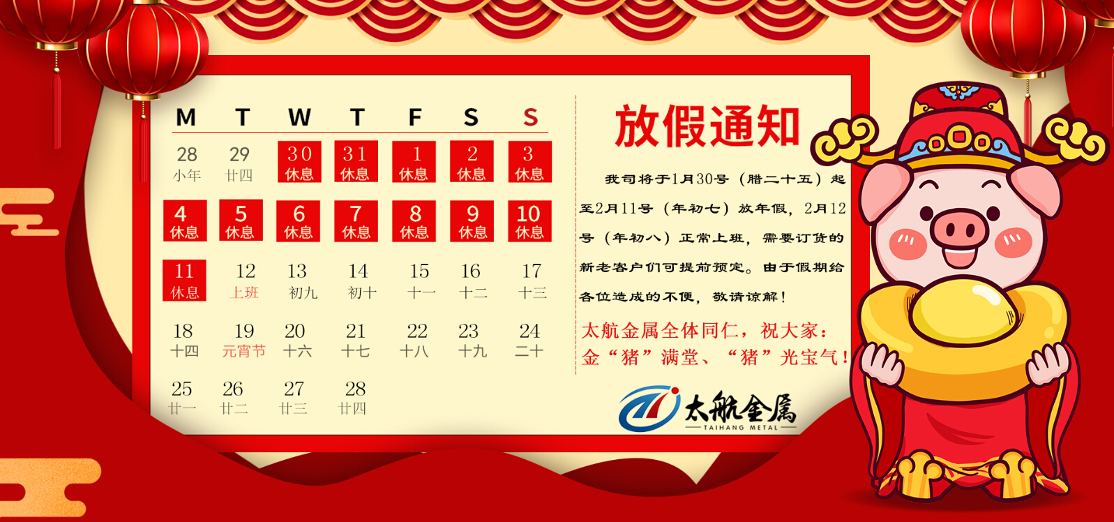 【太航金屬】2019年春節(jié)放假通知