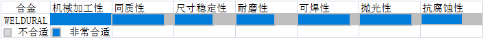 Weldural合金鋁板具備更高的力學性能、沿厚度方向力學性能更均勻。優異的加工性能,加工效率為鋼的5倍。板材經過拉伸或冷壓,殘余應力充分去除,保證了加工過程中和加工后良好的尺寸穩定性。Weldural合金鋁板全部經超聲波探測,可以保證無砂眼、雜質。熱導性高,可以縮短成型時間,提高工作效率。